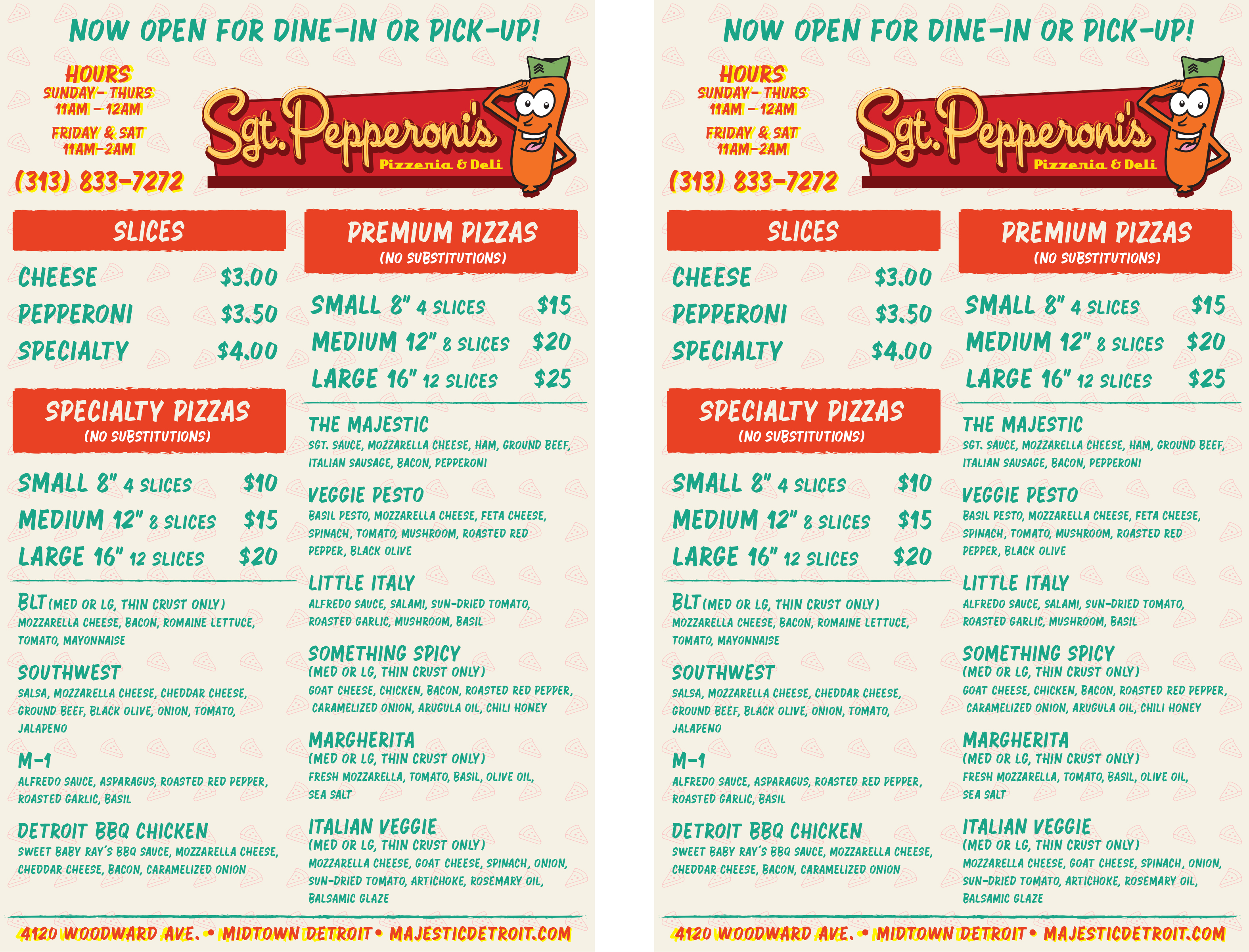 Contact Sgt. Pepperoni's: